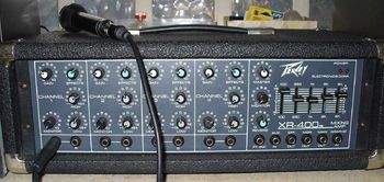PEAVEY XR-400 4 channel mixer with a built in power amp. 100 watts RMS. 5 band master EQ, Reverb, Aux in, Effects in, Monitor out,
